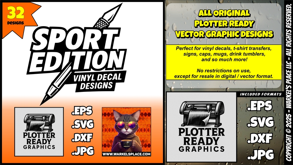 Sport Edition: 32 Plotter-Ready Decal Designs - Complete Vector Collection (EPS, SVG, DXF, JPG)